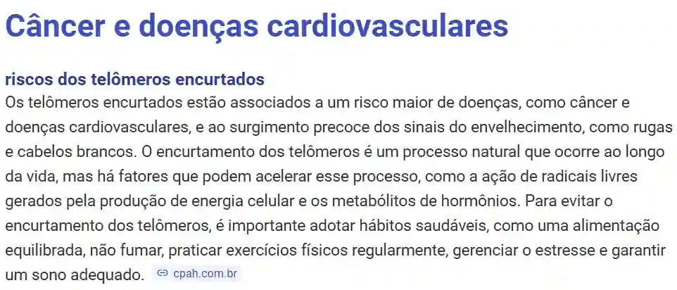 Porque o encurtamento dos telômeros não afeta só sua pele, ele está ligado diretamente ao avanço de doenças respiratórias, degenerativas e até mesmo alguns tipos de câncer.