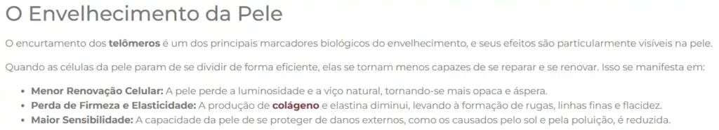 Mas a verdade é outra: o colapso da pele está ligado ao encurtamento dos telômeros causado por toxinas ambientais, estresse oxidativo e hábitos alimentares modernos.