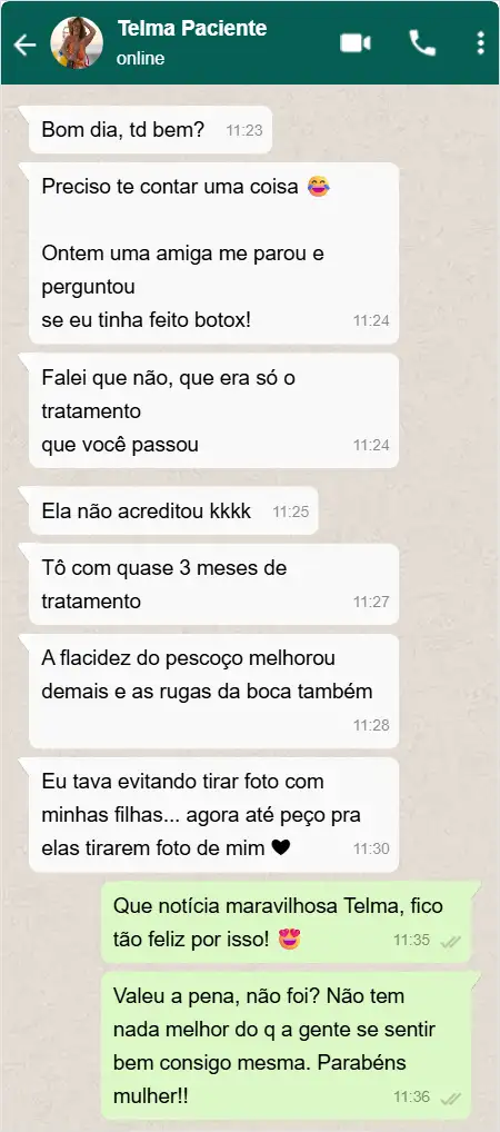 Minha pele do rosto está mais firme, com brilho natural.