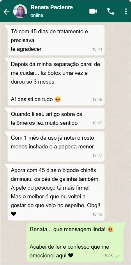 Só restaurando os telômeros para sua forma original, será possível ativar o equilíbrio do seu corpo, e permitir que sua pele volte a absorver os nutrientes certos, causando a reversão das rugas e flacidez.